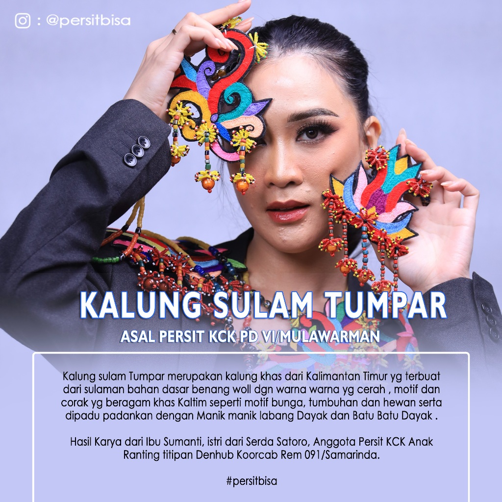Kreasi Kalung Sulam Tumpar berhasil menarik perhatian sebagai salah satu karya UMKM unggulan yang ditampilkan oleh Persit Kartika Chandra Kirana PD VI/Mulawarman. Kalung ini merupakan hasil kerajinan tangan Ibu Sumanti, istri dari Serda Satoro, anggota Persit KCK Anak Ranting titipan Denhub Koorcab Rem 091/Samarinda yang menggunakan benang woll dengan warna-warna cerah, motif dan corak yang beragam khas Kaltim seperti motif bunga, tumbuhan dan hewan serta dipadukan dengan manik-manik lambang Dayak dan Batu-Batu Dayak. Kalung ini tidak hanya indah secara estetika tetapi juga sarat dengan nilai budaya. Dipilihnya Kalung Sulam Tumpar sebagai ikon kreasi UMKM bukan hanya karena keindahannya, tetapi juga sebagai upaya melestarikan warisan budaya lokal sekaligus memberdayakan anggota Persit dalam menghasilkan produk yang bernilai ekonomi tinggi.
