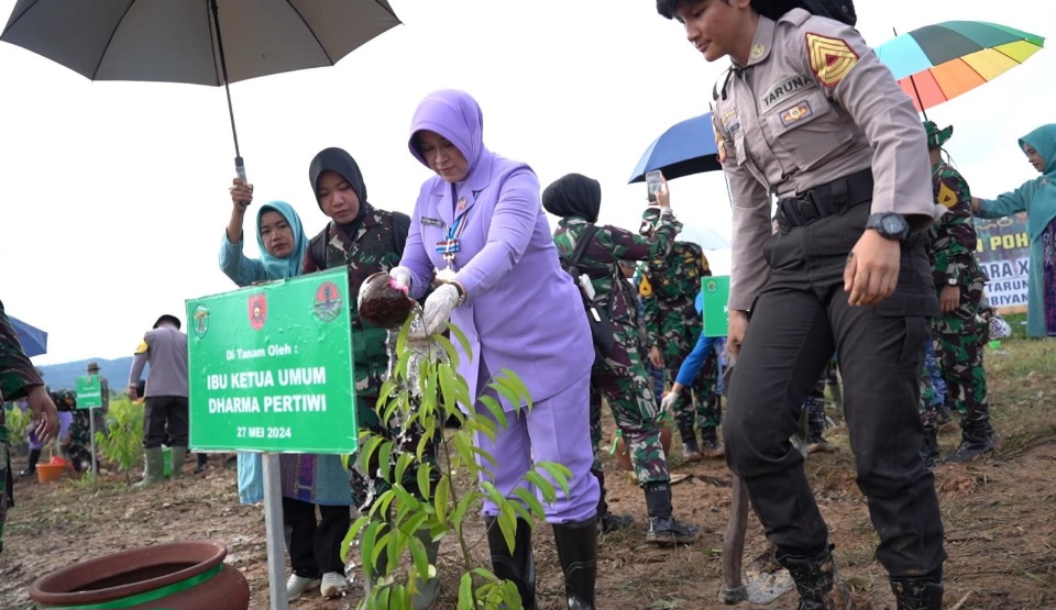 Kaltimkita.com, BALIKPAPAN – Ibu Kehormatan Taruna Akademi TNI, Ibu Evi Agus Subiyanto melaksanakan penanaman pohon di Ibu Kota Nusantara (IKN), Senin, 27 Mei 2024.