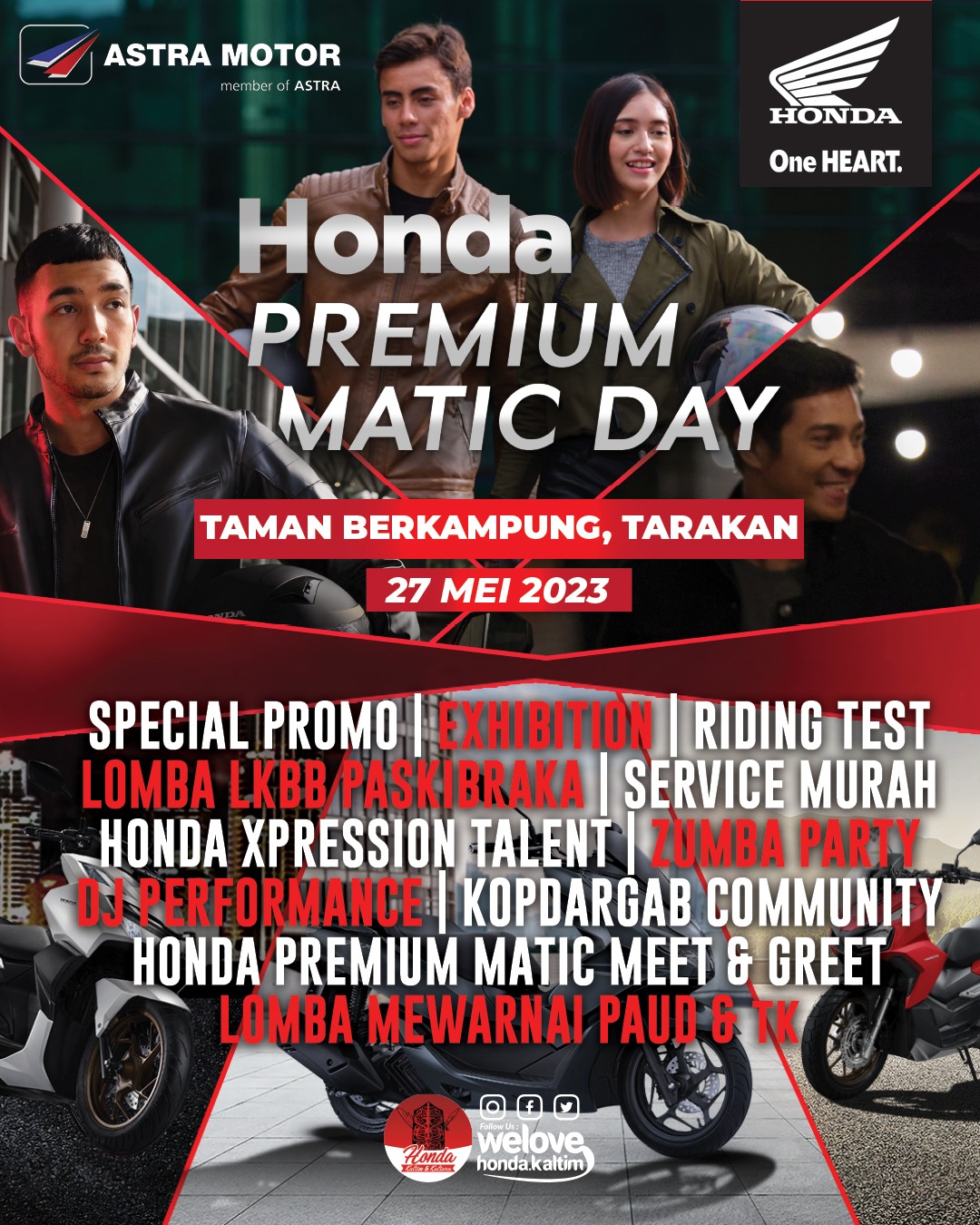 Kaltimkita.com, Tarakan – Untuk memenuhi tingginya antusias masyarakat terhadap sepeda motor matic Honda, Astra Motor Kaltim 1 kembali menggelar Honda Premium Matic Day 2023 yang akan digelar pada 27 mei 2023 bertempat di Taman Berkampung Tarakan.