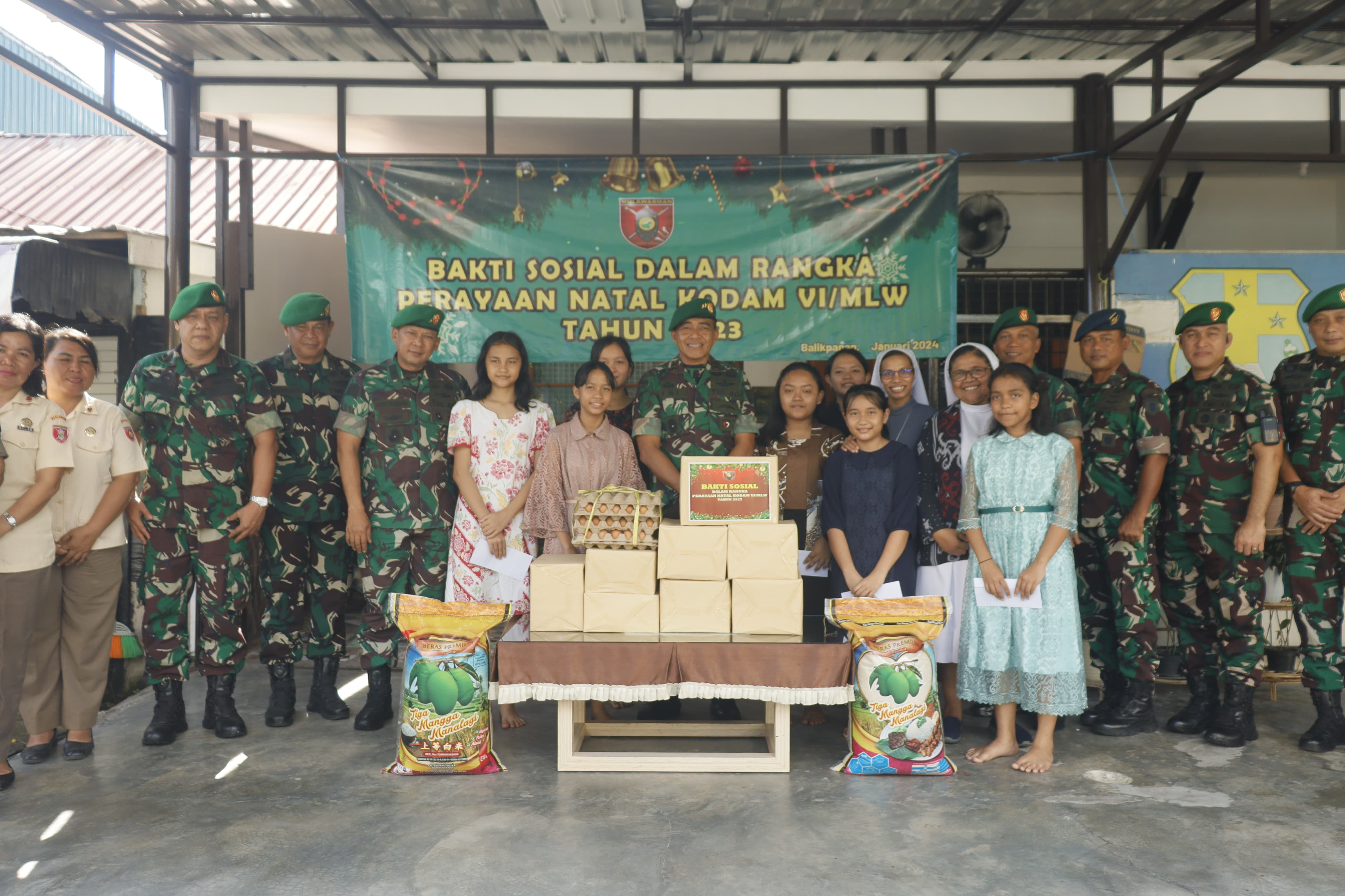Pangdam VI/Mlw Mayjen TNI Tri Budi Utumo yang turut ikut dalam pelaksanaan Bhakti Sosial Perayaan Natal Tahun 2023 Kodam VI/Mlw dengan membagikan bantuan tali asih terhadap anak-anak salah satu Panti Asuhan Katolik Tabita Putri yang berlokasi di Balikpapan Kota. Selain memberikan Tali Asih, Pangdam VI/Mlw juga memberikan bantuan bingkisan natal serta sembako kepada Panti Asuhan.
