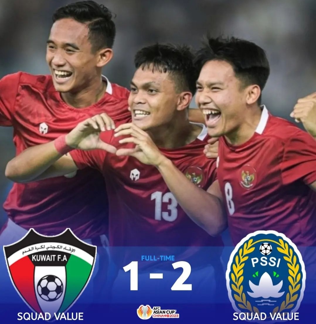 Kaltimkita.cim, KUWAIT CITY - Timnas Indonesia berhasil meraih kemenangan 2-1 atas Kuwat. Tim Garuda bangkit setelah tertinggal lebih dulu berkat penalti Marc Klok dan gol Rachmat Irianto. Indonesia menghadapi Kuwait di Stadion Jaber Al Ahmad pada laga grup A Kualifikasi Piala Asia 2023, Rabu (8/6/2022) malam WIB.
