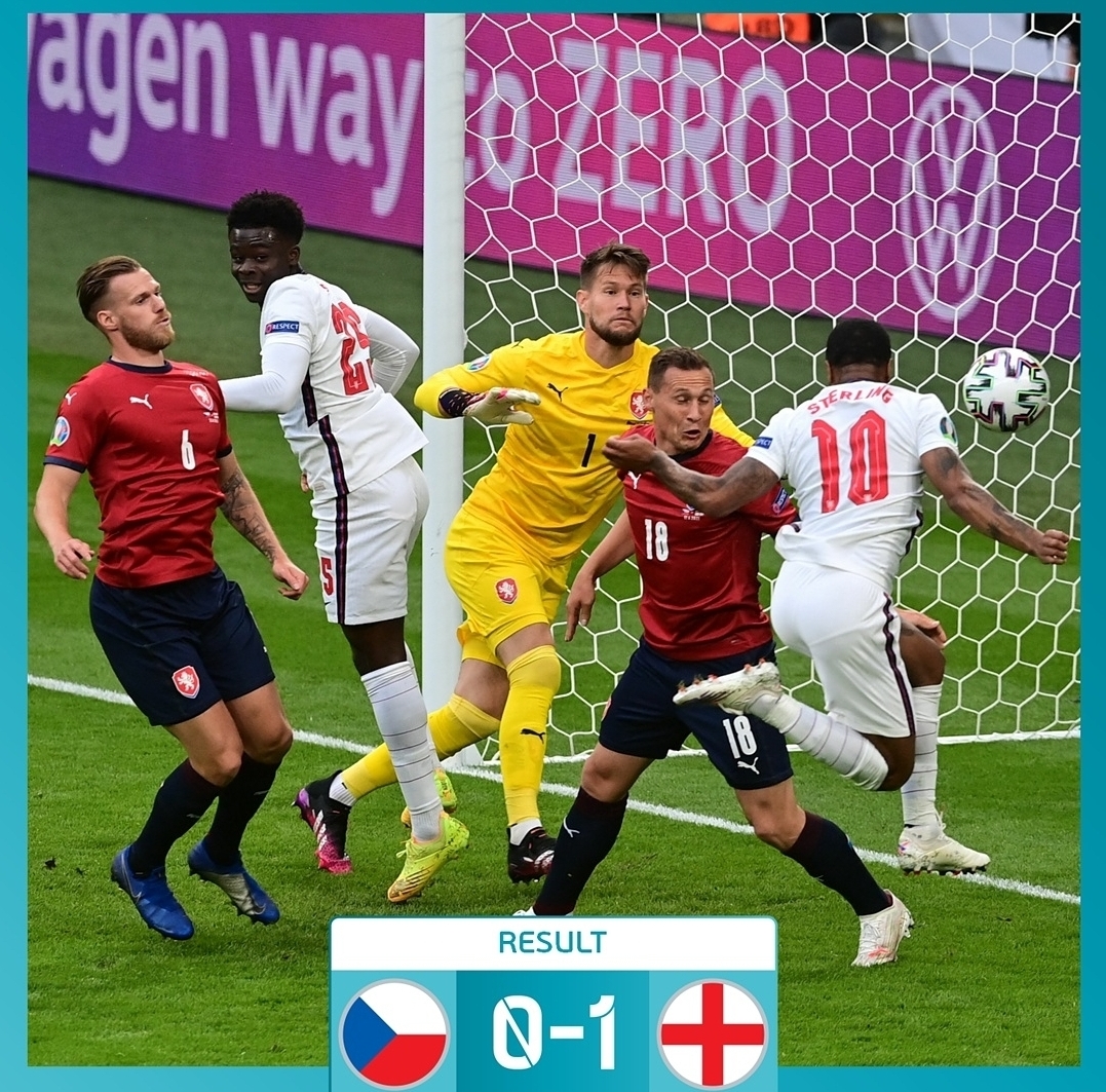 The Three Lions menang dengan skor 1-0 berkat gol tunggal Raheem Sterling. Berkat kemenangan itu, Inggris lolos ke babak 16 besar Euro 2020 dengan status sebagai juara Grup D.