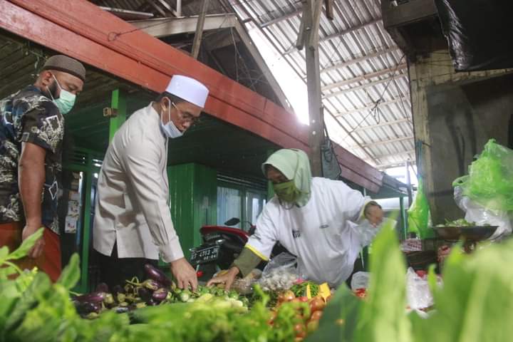 Semua lapak pedagang di pasar Teluk Lingga disinggahi cabup Mahyunadi untuk membeli sayur mayur segar sekaligus menyerap aspirasi pedagang