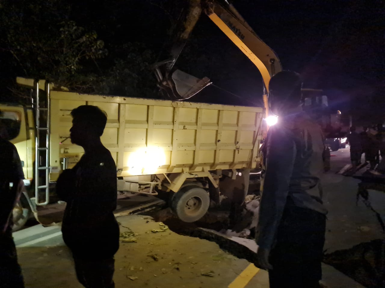 Gerak cepat dibawah pengamanan kepolisian. Perbaikan jalan yang longsor dapat teratasi setelah diperbaiki pihak perusahaan kontraktor pemeliharaan jalan trans provinsi Kaltim.
