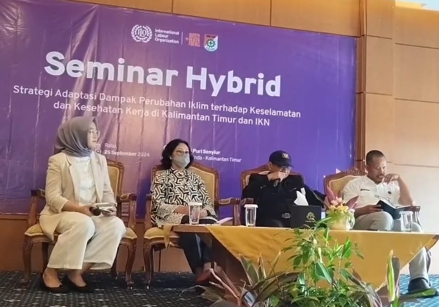 Seminar nasional yang dilaksanakan oleh ILO dan DK3P (Kaltim & IKN) bertemakan 'Strategi Adaptasi Dampak Perubahan Iklim Terhadap K3 di Kaltim dan IKN.