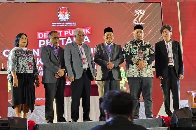 Ketua KPU Kaltim Fahmi Idris yang membuka debat. Hadir juga para anggota KPU lainnya termasuk Ketua Bawaslu Kaltim Hari Derwanto. Sedang panelis debat diketuai Prof Dr Zurqoni, M.Ag, rektor Universitas Islam Negeri (UIN) Sultan Aji Muhammad Idris Samarinda.