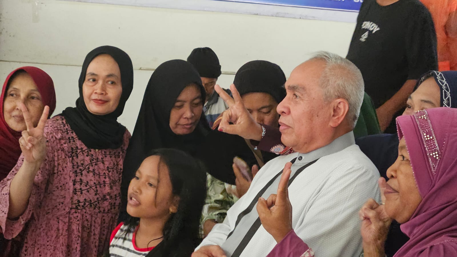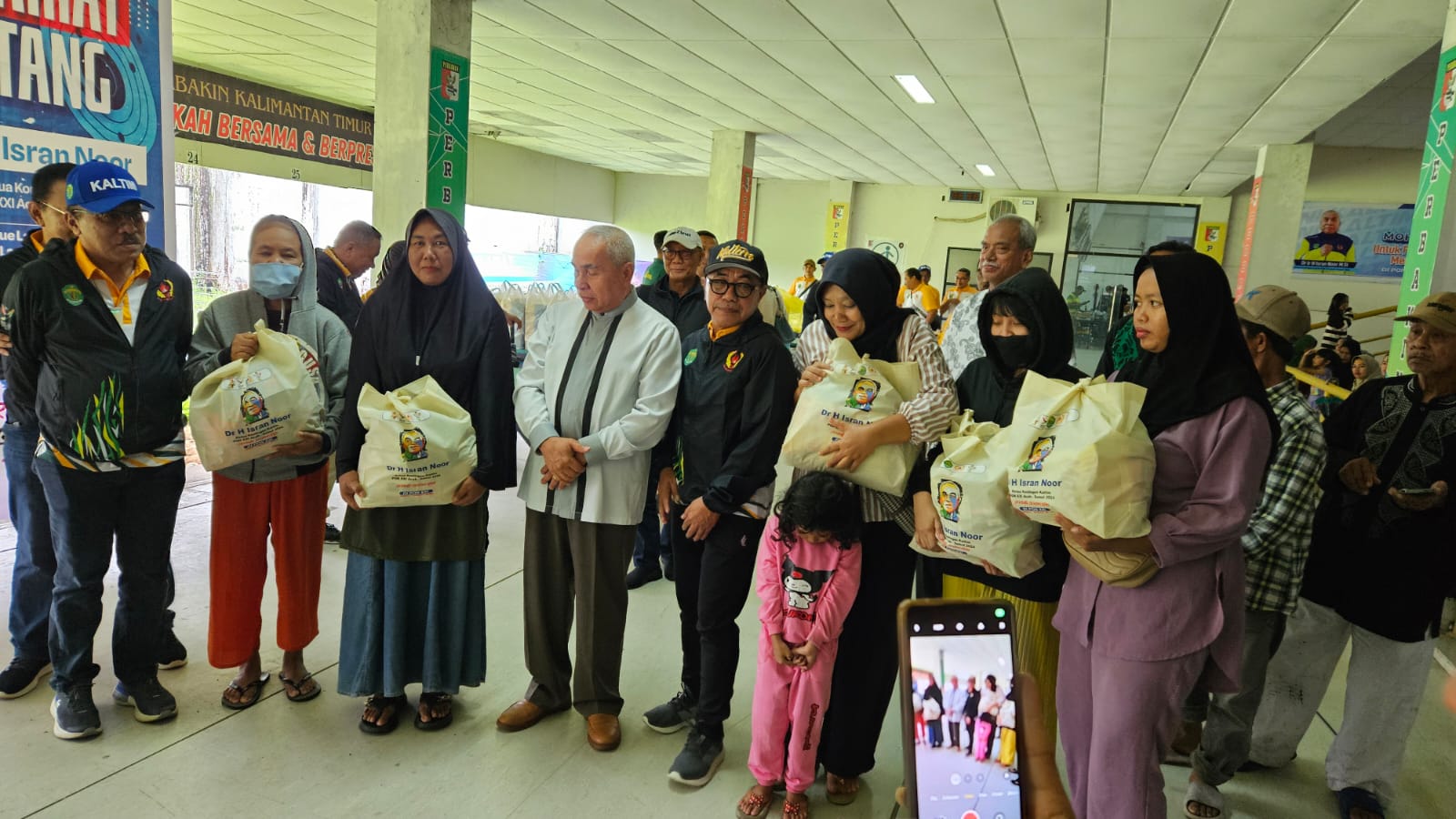 Isran menyerahkan sembako kepada warga sekitar Lapangan Tembak Manggar.