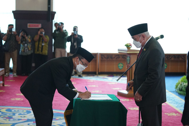 KaltimKita.com, SAMARINDA – Gubernur Kalimantan Timur Dr H Isran Noor mengukuhkan Hasoloan Manalu sebagai Kepala Perwakilan Badan Pengawasan Keuangan dan Pembangunan (BPKP) Provinsi Kalimantan Timur, di Kantor Gubernur Kaltim, Jumat (15/7/22).