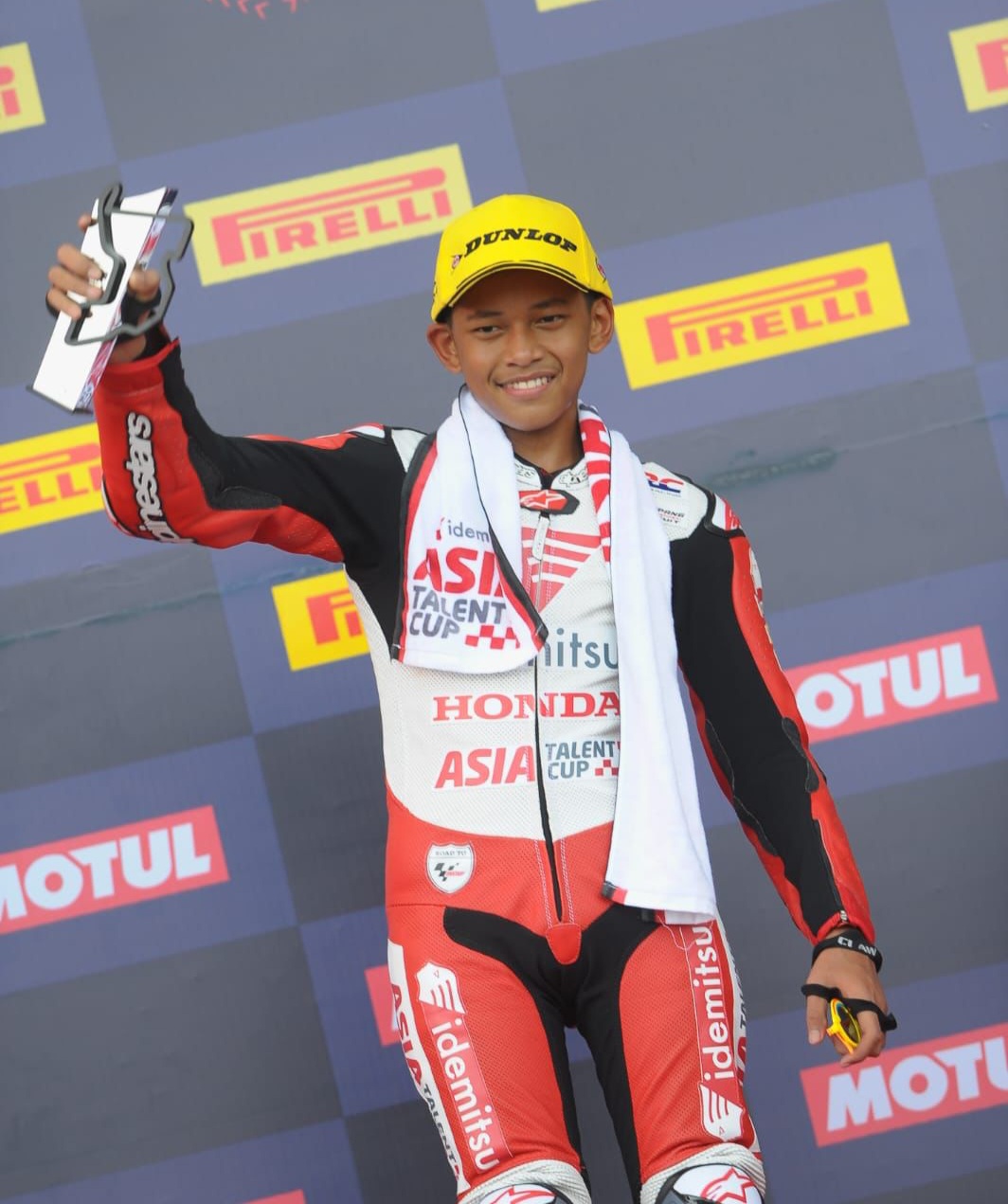 Kaltimkita.com, Jakarta – Veda Ega Pratama berhasil meraih podium tertinggi pada race pertama seri keenam di ajang Idemitsu Asia Talent Cup (IATC) 2022 yang digelar di Pertamina Mandalika International Street Circuit, Nusa Tenggara Barat – Indonesia (12/11). Bersama Veda, empat pebalap binaan PT Astra Honda Motor (AHM) lainnya turut menunjukkan semangat juang tinggi sebagai pebalap tuan rumah menghadapi 15 pebalap muda dari mancanegara.