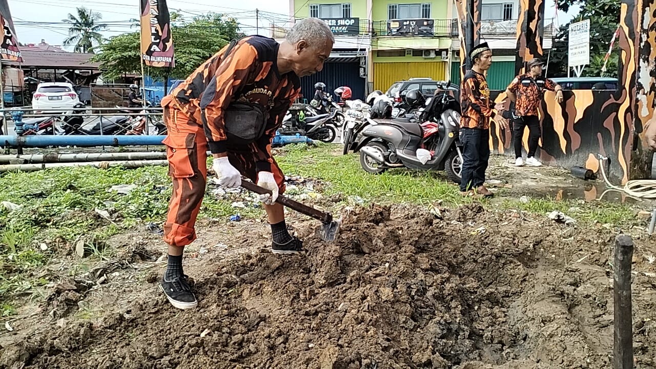 Kegiatan kerja bakti massal dalam rangka HUT ke-63 PP yang berlokasi di sekitar sekretariat MPC PP Balikpapan, Jalan Manunggal, Kelurahan Gunung Bahagia, kawasan MT. Haryono, diikuti ratusan anggotanya.
