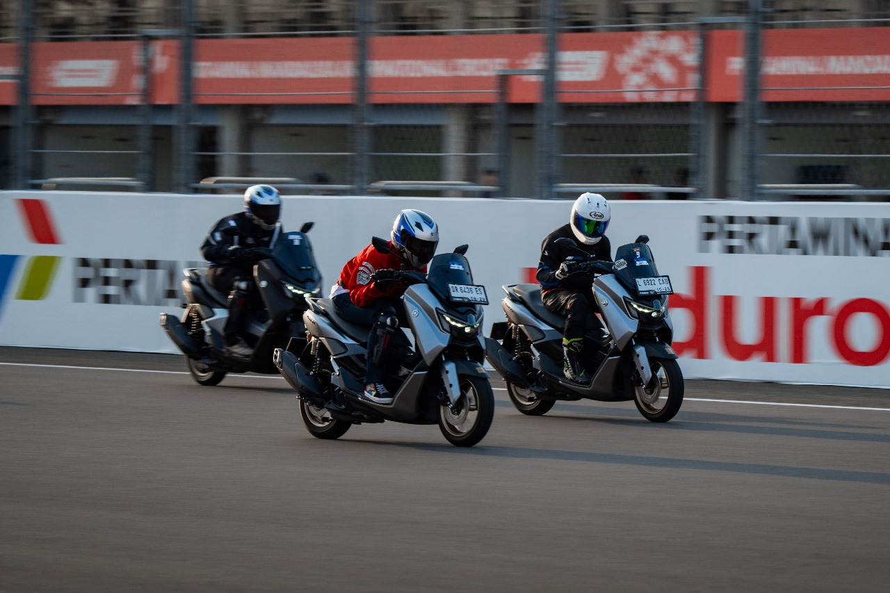 Tak berhenti sampai di situ, Yamaha juga memberikan kesempatan menjajal skutik tersebut di trek lain menghadirkan sensasi berbeda, dengan merasakan kualitas NMAX “TURBO” di sirkuit Mandalika. Dalam rangkaian event bLU cRU Yamaha Sunday Race akhir Oktober 2024 lalu, Yamaha mengajak awak media untuk mendapatkan riding experience NMAX “TURBO” di lintasan sirkuit Mandalika. Untuk pertama kalinya pengalaman berkendara tak terlupakan itu diperoleh dengan menggunakan NMAX “TURBO” di sirkuit Mandalika. Empat lap dilewati dalam suasana senja yang turut mengiringi para pengendara menyusuri karakter trek tersebut.