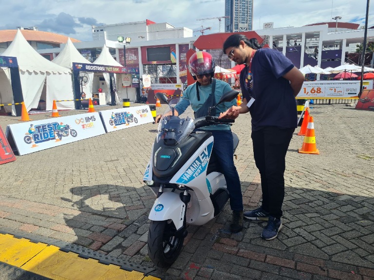 Kendati belum dipasarkan, tampilnya jajaran kendaraan listrik atau Electric Vehicle (EV) di booth Yamaha yang meliputi model E01, NEO’s, E-Vino, dan juga E-PAS (Sepeda listrik) ternyata sukses menjadi magnet yang banyak menarik minat para pengunjung untuk datang. Bahkan model E01 yang turut tersedia di area test ride bersama dengan NEO’s dan juga Grand Filano Hybrid Connected banjir peminat, sehinga sukses terpilih sebagai *‘Best Tested Motorcycle Choice’*menglahkan model-model sepeda motor lainnya, baik itu motor bensin maupun EV dengan total peserta uji kendara sebanyak 484 orang selama 11 hari berlangsungnya pameran.