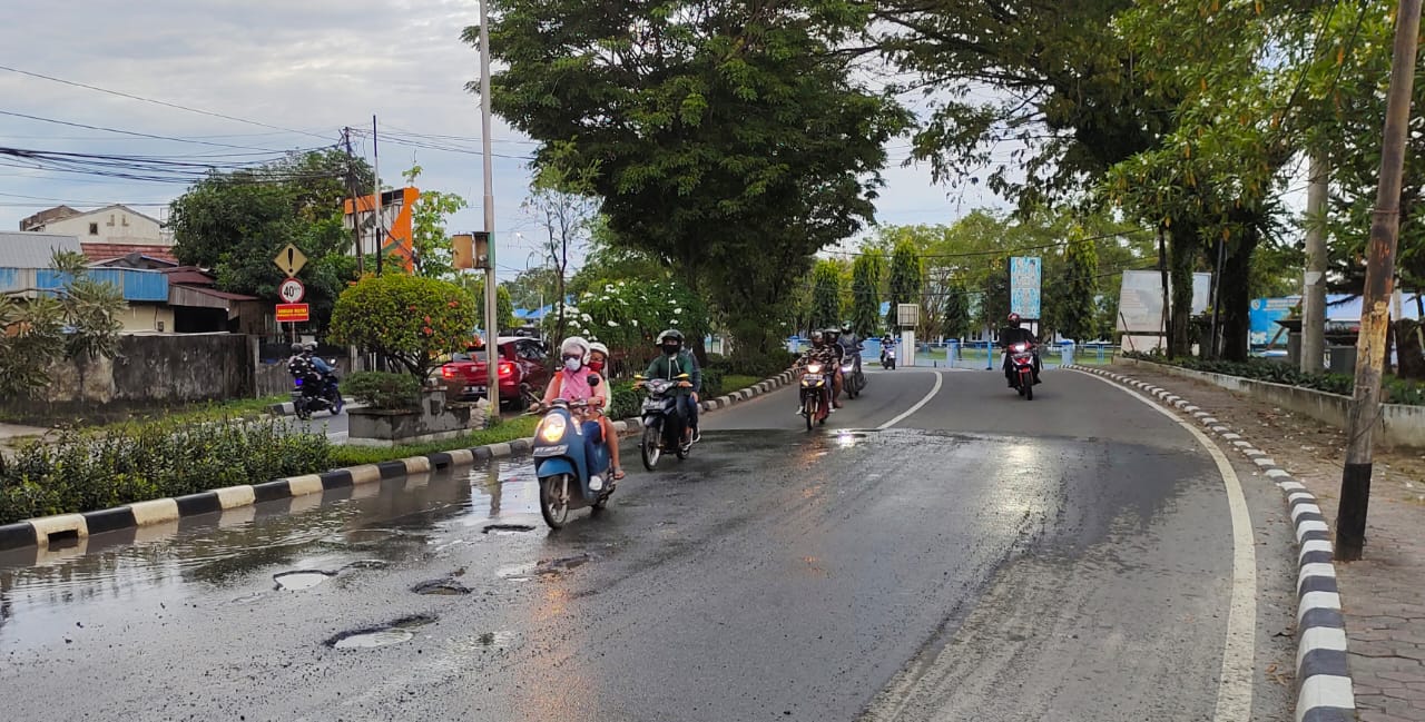 KaltimKita.com, BALIKPAPAN - Pengendara yang melintas tepat di tikungan depan Lanud Dhomber atau seberang Gereja Syalom Sepinggan dari arah Manggar, wajib berhati-hati. Pasalnya di tikungan banyak lubang. Khusus bagi pengendara sepeda motor, lebih rawan lagi. Bisa alami kecelakaan lalu lintas, karena terjerembab ke dalam lubang. Atau terjatuh akibat menghindari lubang.