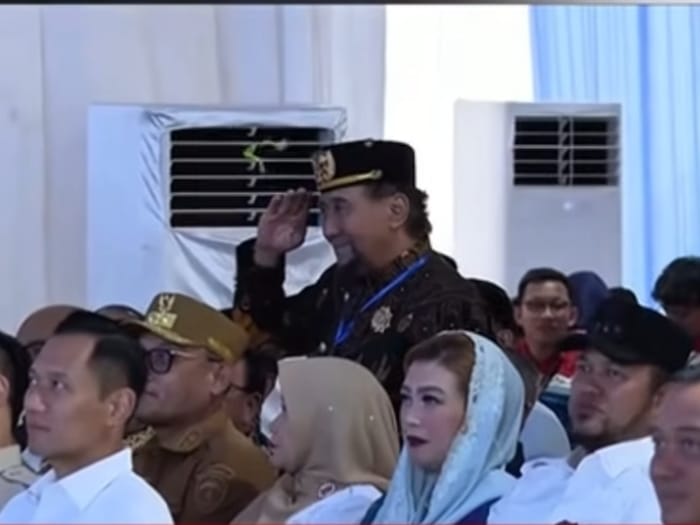 Sultan Kutai Kartanegara ing Martadipura Sultan Adji Mohammad Arifin memberi hormat ketika dicari Presiden Prabowo.