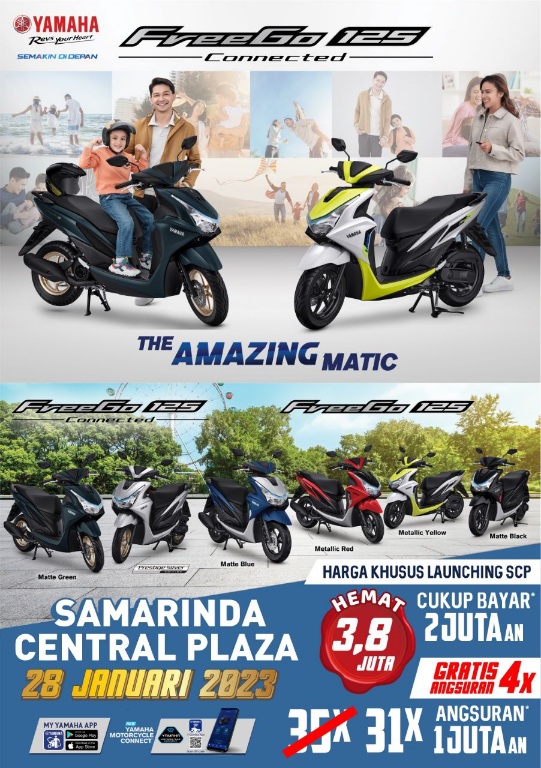 “Saya imbau kepada seluruh masyarakat untuk menghadiri launching Yamaha FreeGo 125 Connected, karena selain keunggulan desain dan teknologinya, kami juga siapkan promo terbaik hanya saat launching Yamaha FreeGo nanti. Jadi buruan deh kalian datang jangan sampai terlewatkan,” ungkapnya.