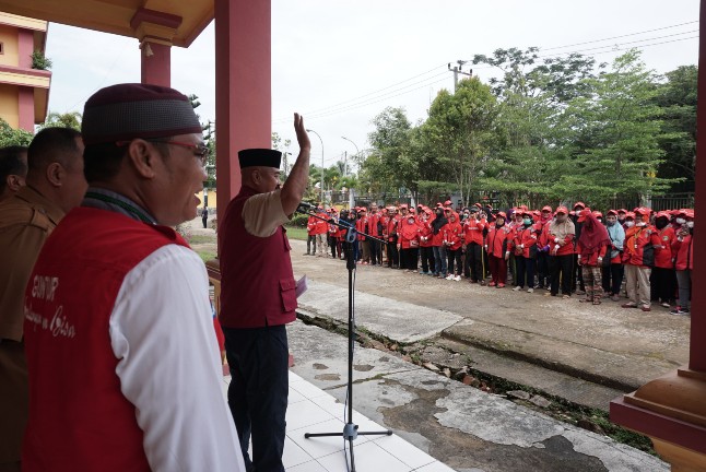 Kaltimkita.com, KUTAI KARTANEGARA – 900 tenaga kebersihan atau Pasukan Merah Putih mendapatkan bingkisan sembako dari Pemerintah Kabupaten (Pemkab) Kutai Kartanegara (Kukar), diserahkan secara simbolis oleh Bupati Edi Damansyah di halaman kantor Dinas Perumahan dan Pemukiman (Perkim), Selasa (18/4/2023).