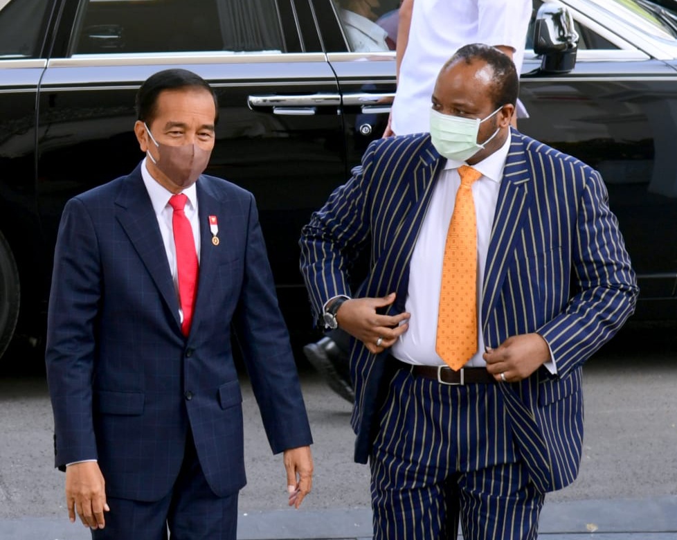Jakarta - Presiden Joko Widodo dan Raja Eswatini, Mswati III, menyaksikan penandatanganan nota kesepahaman atau MoU perkuatan kerja sama bilateral antara kedua negara di Istana Merdeka, Jakarta, Kamis, 25 Agustus 2022.