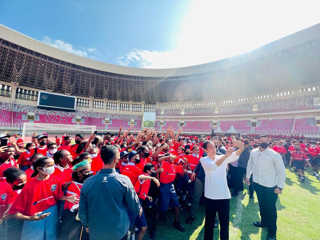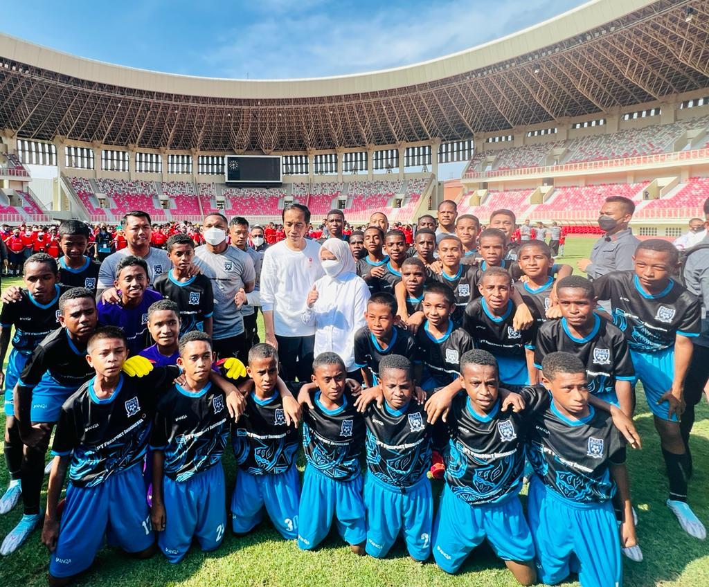 Kaltimkita.com, JAYAPURA - Mengawali kunjungan kerjanya di Provinsi Papua, Presiden Joko Widodo didampingi Ibu Iriana Joko Widodo meluncurkan Papua Football Academy (PFA) di Stadion Lukas Enembe, Kabupaten Jayapura, Rabu, 31 Agustus 2022.
