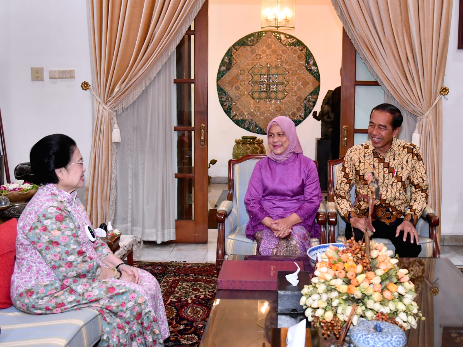 Jakarta - Masih dalam suasana Lebaran, Presiden Joko Widodo bersama Ibu Iriana Joko Widodo melakukan silaturahmi ke kediaman Presiden ke-5 RI, Megawati Soekarnoputri, di Jakarta, pada Kamis, 27 April 2023.