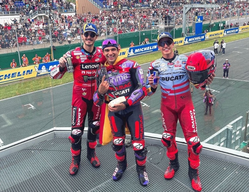 Jorge Martin mengakhiri kutukan pole sitter gagal menjadi juara dalam balapan di Le Mans. Rider tim Pramac Ducati ini juga mengulangi keberhasilan P1 dalam sprint race sehari sebelumnya.