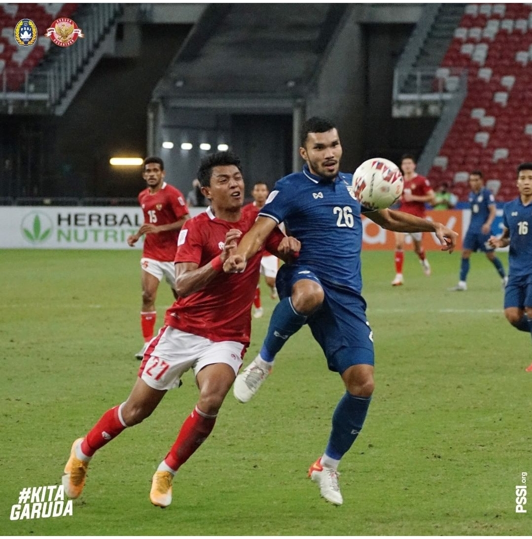 Kaltimkita.com, SINGAPURA - Timnas Indonesia kalah telak dari Thailand di leg I final Piala AFF 2020. Skuad Garuda tumbang 0-4 dari Gajah Perang.