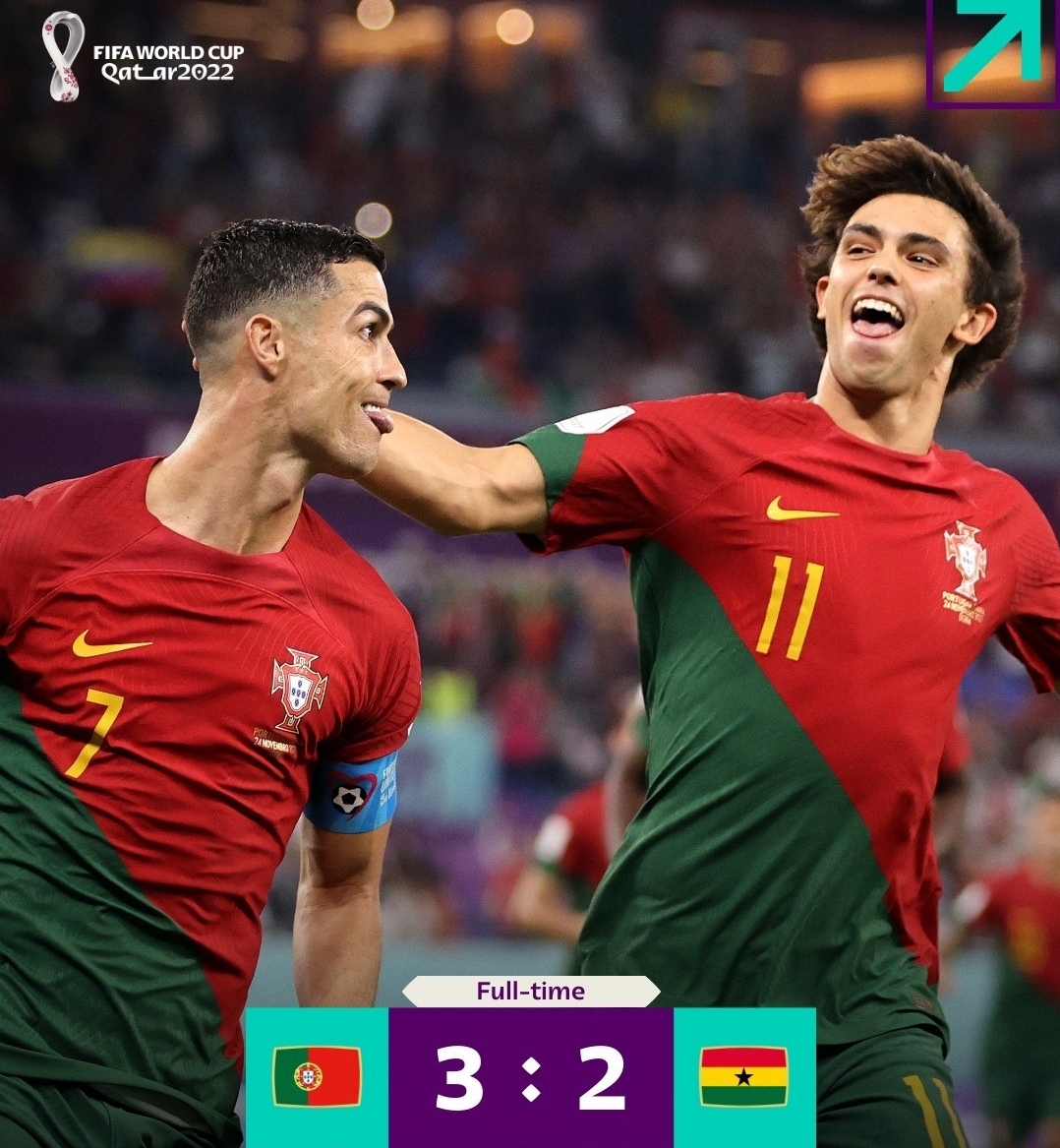 Laga Portugal vs Ghana berakhir dengan skor 3-2 untuk kemenangan Cristiano Ronaldo dkk.