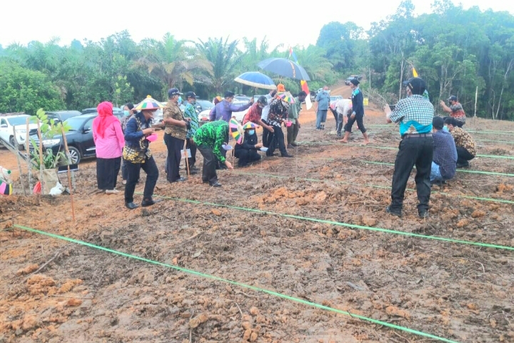 KALTIMKITA.COM, KUTAI TIMUR - Ketua DPRD Kutai Timur Joni menghadiri peresmian Kampung Tangguh Nusantara Covid-19 dengan melakukan penanaman berbagai tanaman pokok di Desa Batu Timbau Ulu Kecamatan Batu Ampar, Kamis, (18/03/2021)