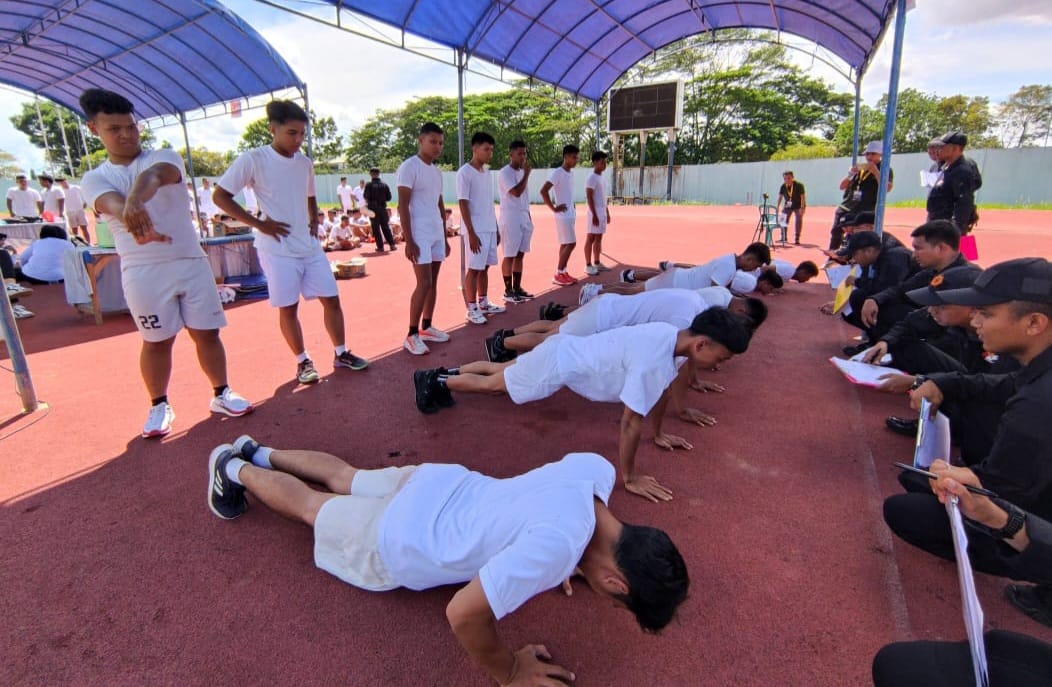 Selanjutnya, pukul 07.30 WITA, peserta memulai SKB Kesamaptaan mulai dari lari 12 menit, pull up/chinning up, sit up, push up dan shuttle run yang dinilai langsung oleh tim BRIMOB.