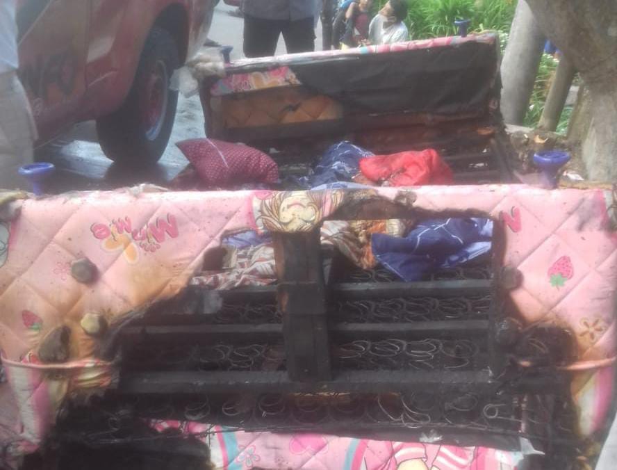 "Ada bau gosong, kemudian saya mematikan sumber listrik. Pas saya buka kamar anak saya ternyata ada api," ungkap Ana.