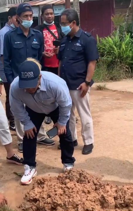 Tampak anggota dewan Adi Gondrong sidak ke lokasi pipa yang bocor didampingi Dirut PDAM Tirta Tuah Benua Kutim Suparjan dan Kepala UPT PDAM Bengalon Muhammad Syafril