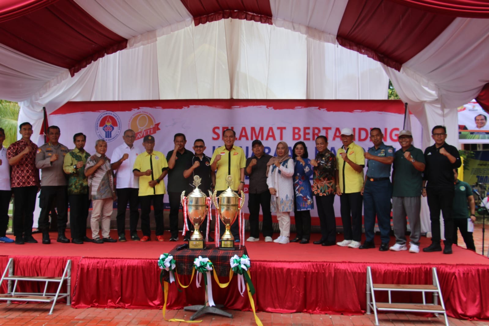 KaltimKita.com, BALIKPAPAN – Kejuaraan Nasional (Kejurnas) Barisan Atlet Veteran Tenis Indonesia (Baveti) XI/2024 resmi bergulir, Rabu (2/10/2024) pagi. Dibuka langsung oleh Staf Ahli Bidang Hubungan Pusat dan Daerah Kemenpora, Dr. Dwijayanto Sarosa Putera. Kejuaraan edisi ke-11 tersebut, tercatat menjadi peserta terbanyak sepanjang pelaksanaan. Total 420 atlet berpartisipasi dari 21 provinsi yang hadir. Selain kejuaraan, PP Baveti juga melaksanakan pelantikan kepada Baveti Papua Barat Daya