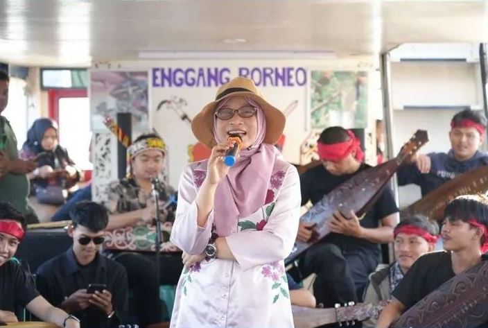 Kaltimkita.com, SAMARINDA - Sekretaris Daerah (Sekda) Provinsi Kaltim Sri Wahyuni mengajak peserta Beasiswa Seni dan Budaya Indonesia (BSBI) Kementerian Luar Negeri (Kemenlu) RI, yang berasal dari sembilan negara, menyusuri Sungai Mahakam menggunakan Kapal wisata Enggang Borneo, Ahad (30/7/2023).