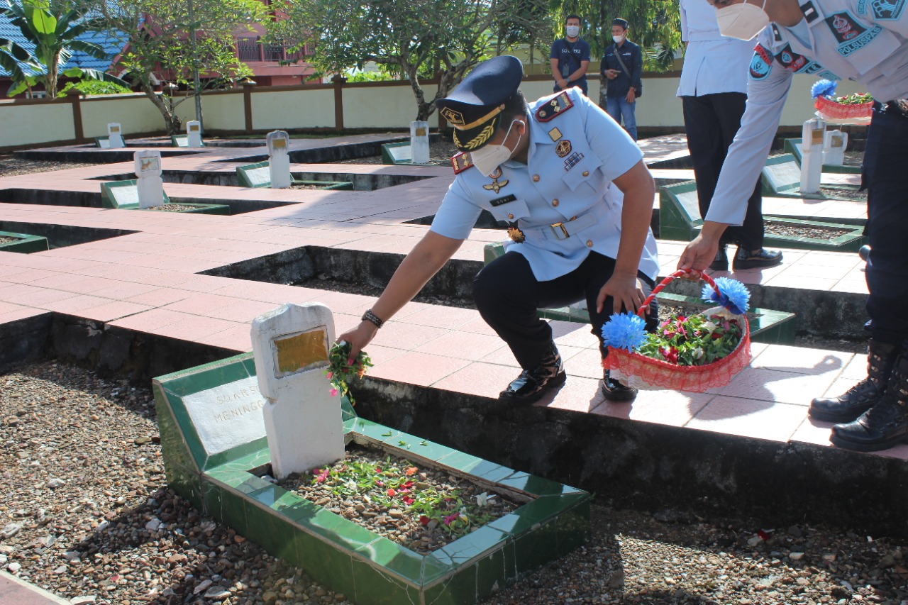 KaltimKita.com, PASER - Rabu (20/04/2022) puluhan pegawai Rumah Tahanan negara (rutan) Tanah Grogot tampak berbondong bondong melaksanakan tabur bunga sekaligus upacara penghormatan kepada pahlawan yang telah gugur sebagai rangkaian peringatan Hari Bakti Pemasyarakatan yang ke-58 tahun, di Taman Makam Pahlawan (TMP) Daya Taka, Tanah Grogot.