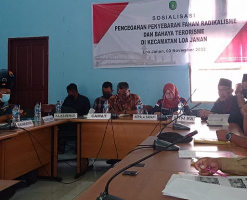 Kaltimkita.com, Kutai Kartanegara – Badan Kesatuan Politik dan Bangsa (Kesbangpol) Kutai Kartanegara (Kukar) mensosialisasikan pencegahan penyebaran paham radikalisme dan bahaya terorisme di Kecamatan Loa Janan, Kamis (3/11/2022).