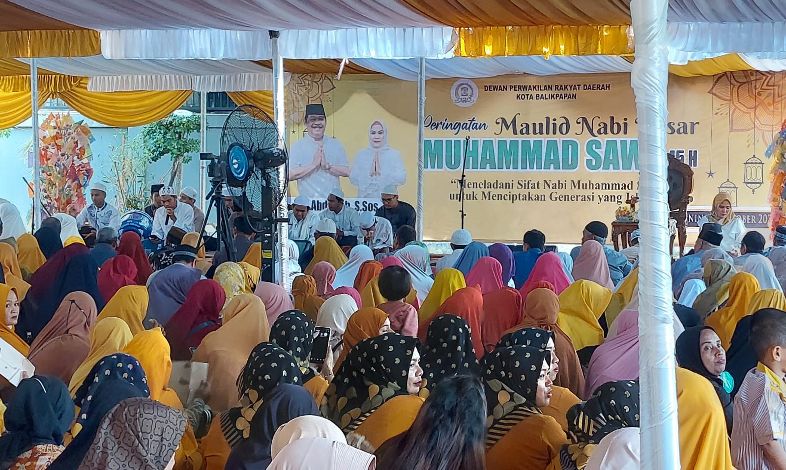 Kaltimkita.com, BALIKPAPAN - Masih dalam momentum memperingati Maulid Nabi Muhammad SAW 1445 H, Ketua DPRD Balikpapan, H. Abdulloh, S.Sos merayakan hari lahirnya Nabi terakhir umat muslim se-Dunia itu di Halaman Parkir Rumah Jabatan, Jalan Kapten Piere Tendean, Kelurahan Gunungsari Ilir, Balikpapan Tengah, Senin (16/10/2023) siang.