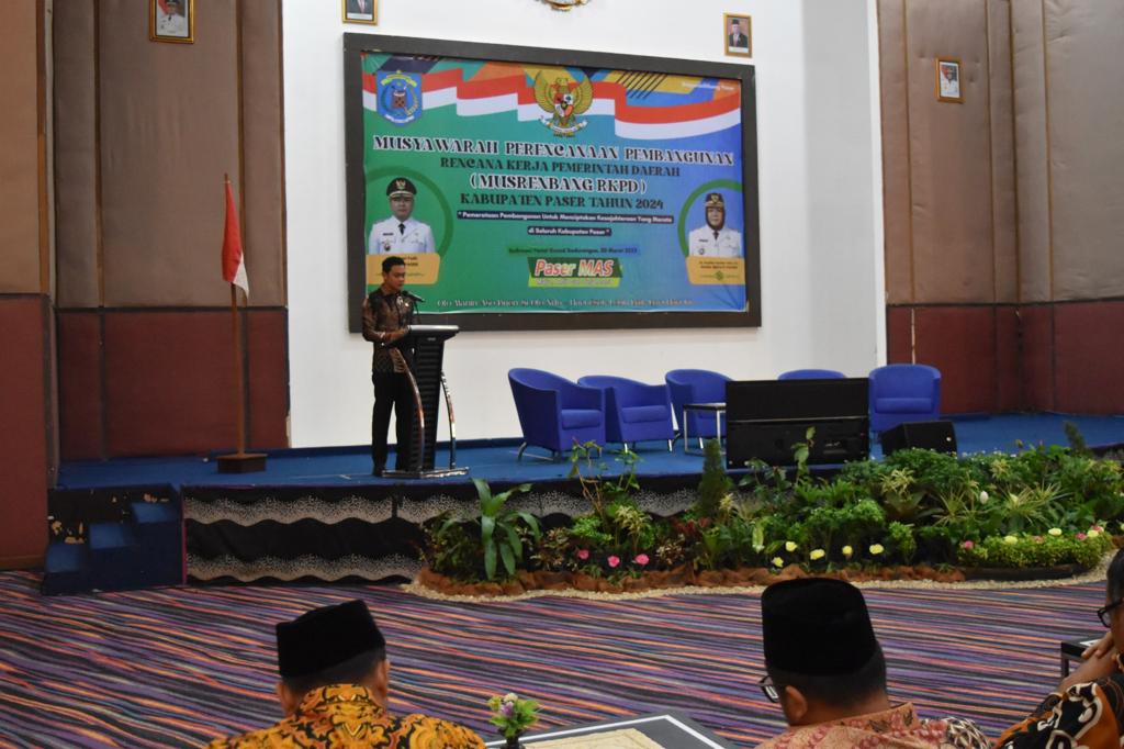 Kaltimkita.com - TANA PASER - Ketua DPRD Paser Hendra Wahyudi menyampaikan paparan dalam Musyawarah Perencanaan Pembangunan (Musrenbang) Rencana Kerja Pemerintah Daerah (RKPD) Kabupaten Paser untuk anggaran tahun 2024. Diantaranya tentang kondisi ekonomi 2022.