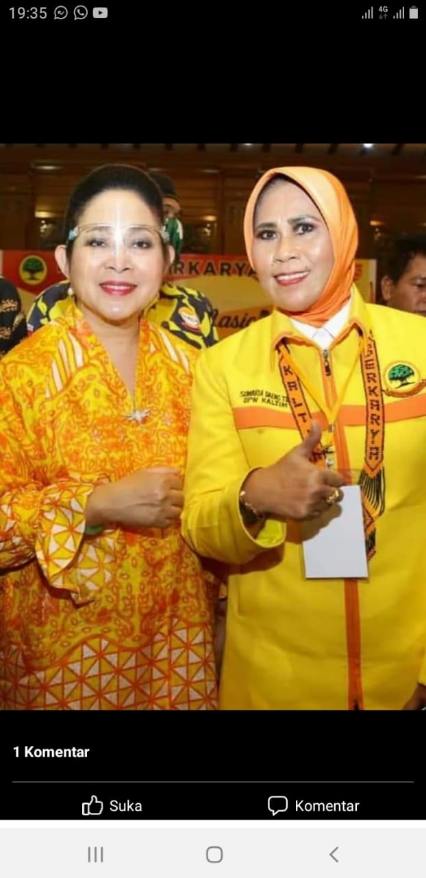 Akrab kental kedekatan ketua DPW Berkarya Kaltim Sumaria saat bersama keluarga cendana Siti Hediati Hariyadi (Titiek Soeharto) pada perhelatan agenda besar Berkarya di tingkat pusat.