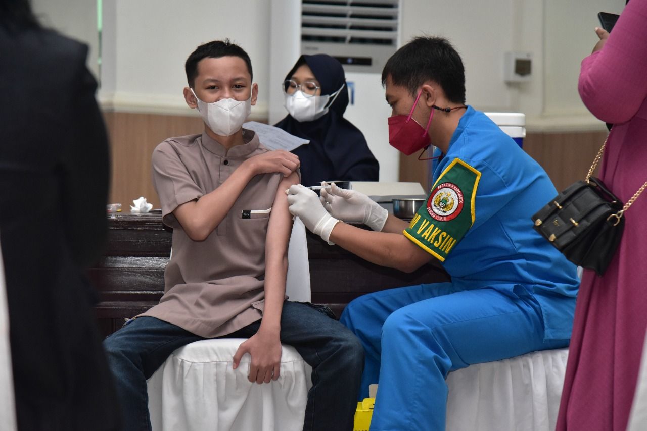 Tidak hanya untuk anak-anak KBT saja, Kodam VI/Mlw khususnya Kesdam VI/Mulawarman juga melaksanakan Vaksinasi untuk masyarakat khususnya usia 6-11 Tahun. Kodam VI/Mlw sudah melaksanakan Vaksinasi untuk anak-anak di beberpa tempat yaitu di Perum Melati Kelurahan Sepinggan Baru dan Hotel Maxone termasuk hari ini di Aula Makodam. (Pendam 6/bie)