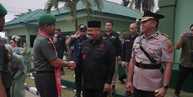Kaltimkita.com, KUTAI KARTANEGARA – Bupati Kutai Kartanegara (Kukar) Edi Damansyah bersama Dandim 0906/KKR Letkol Inf Jeffry Satria menyambut kedatangan Komandan Resort Militer (Danrem) 091/ASN Brigjend TNI Yudhi Prasetyo, di Makodim 0906 KKR, Selasa (27/6).