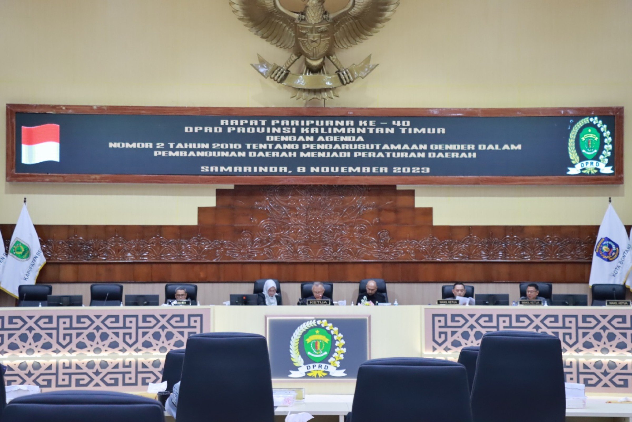 Kaltimkita.com, SAMARINDA - DPRD Kaltim menggelar Rapat Paripurna Ke 40 dengan agenda penyampaian laporan akhir kerja Komisi IV pembahas ranperda inisiatif Pemprov Kaltim tentang perubahan atas Perda Nomor 2 Tahun 2016 Tentang Pengarusutamaan Gender (PUG) Dalam Pembangunan Daerah, persetujuan DPRD Kaltim terhadap Ranperda inisiatif Pemprov Kaltim tentang perubahan atas Perda Nomor 2 Tahun 2016 Tentang PUG Dalam Pembangunan Daerah menjadi Perda, dan pendapat akhir kepala daerah. Rabu (8/11)