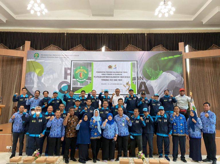 KaltimKita.com, SAMARINDA - Kontingen Porwanas Persatuan Wartawan Indonesia (PWI) Kalimantan Timur yang akan berlaga dalam perhelatan Pekan Olahraga Wartawan Nasional (Porwanas) XIII Jatim 2022, 21-27 November dilepas Kepala Dinas Pemuda dan Olahraga (Dispora) Provinsi Kalimantan Timur yang berlangsung di ruang serbaguna Dispora Kaltim di Komplek GOR Kadrie Oening Sempaja Samarinda, Kamis (17/11/2022).