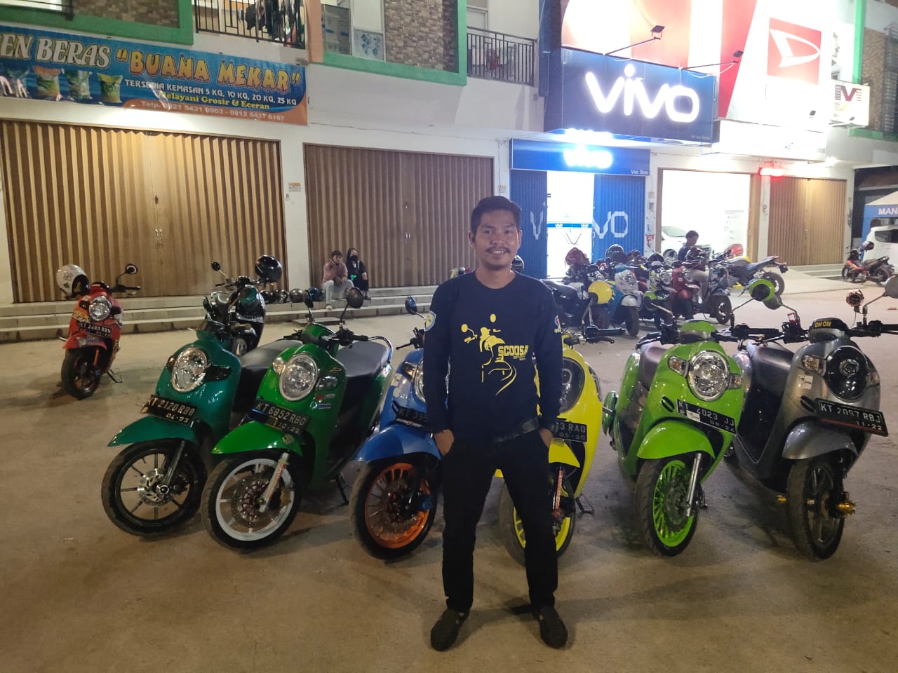 Ketua Famget Scoopy Mandra koordinatori Scoosa Kutim touring Kopdar melintas rute wilayah Kutim arah Bontang mampir sejenak di beberapa kecamatan membawa misi menangkan MaKin Kutim