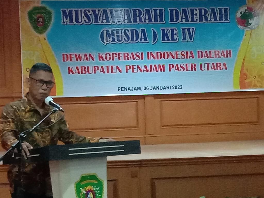 Hal ini disampaikan Plt Sekretaris Daerah Kabupaten Penajam Paser Utara (PPU) Muliadi saat mebacakan Sambutan Bupati PPU H Abdul Gafur Mas’ud (AGM) pada Musda IV Dewan Koperasi Indonesia Daerah (Dekopinda) Kabupaten PPU, dihadiri Ketua Komisi III DPRD PPU Membidangi Ekonomi H Wakidi MA, Wakil Ketaua Dekopinda Provinsi Kaltim Fazrul Azis, Kadis UMKM-Perindag Kop Kabupaten PPU Kuncoro, Ketua Dekopinda Kabupaten PPU Purwantara, serta undangan lainnya, berlangsung di Aula lantai 1 Sekretariat Kabupaten PPU, Kamis (6/1/2022).