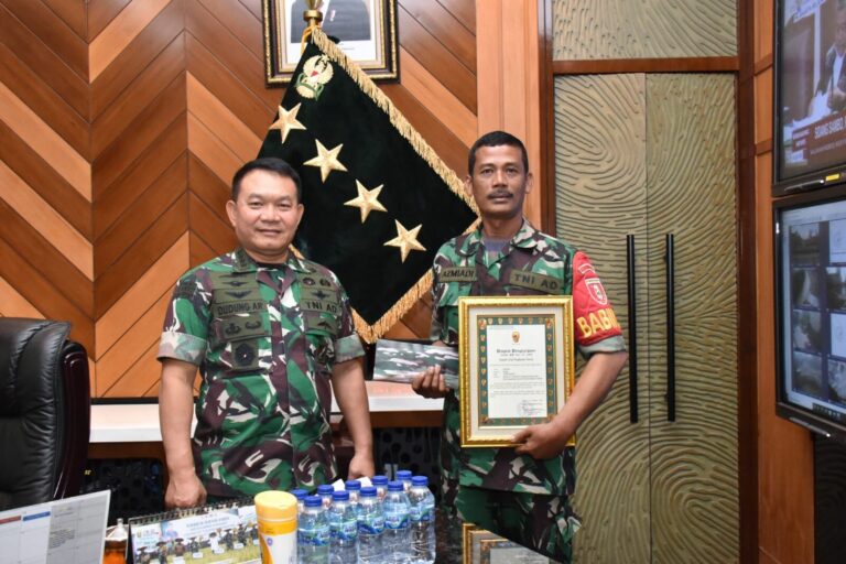 Yang tidak pernah terbayangkan Kopka Azmiadi, berkat aksi mulianya dia didampingi Dandim mendapat undangan menghadap Kepala Staf Angkatan Darat (Kasad) Jenderal TNI Dr Dudung Abdurachman di Mabes TNI AD Jakarta, Selasa (24/1) lalu.