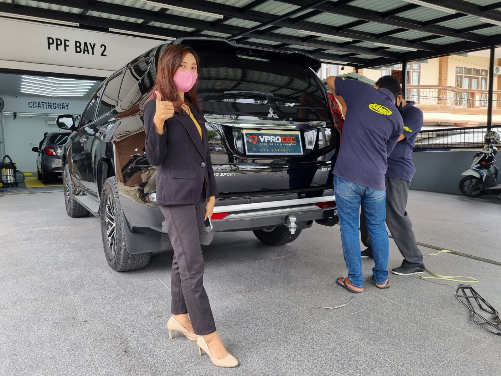 “Semua mobil-mobil ini masuk dengan beragam variasi. Ada yang coating dengan vprotec, ada yanga full PPF (Paint Protection Film), ada pula yang kombinasi seperi Pajero ini, coating dengan vprotec dan PPF,” ujar Tia, sapaan akrabnya.