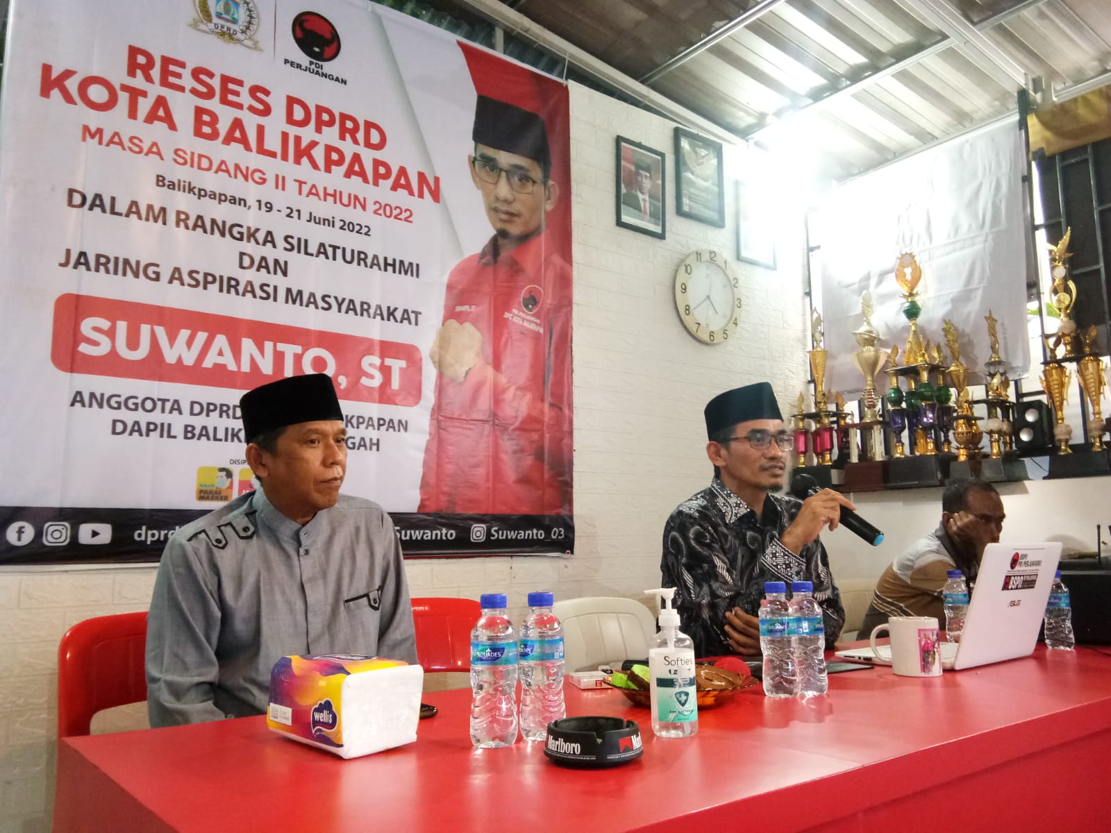 Kaltimkita.com, BALIKPAPAN - Dalam rangka menjalin silaturahmi dan jaring aspirasi masyarakat, anggota DPRD Balikpapan, Dapil Tengah, Suwanto, ST, menggelar Reses masa sidang II tahun 2022 di kediamannya, Kelurahan Gunung Sari Ilir, Kecamatan Balikpapan Tengah, pada Minggu (19/6/2022) sore.