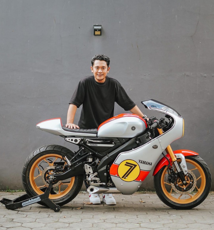 Builder dari Katros Garage itu mengambil konsep classic racing Yamaha bergaya café racer full fairing dengan special livery 60th World Grand Prix Yamaha. ”Custom XSR 155 ini bergaya café racer full fairing. XSR 155 motor sport heritage dimana konsep itu paling dekat masuk ke café racer. Mengingat antusias Gen Z sekarang juga lebih ke sport, kami mencoba menggabungkan style retro yang sudah ada pada XSR 155 dikombinasikan dengan sport retro jadi kami pilih café racer. Untuk custom XSR 155 jarang yang mengadopsi style café racer full fairing yang benar-benar ketutup semua bagian depannya, akhirnya kami coba buat dengan konsep sesimpel mungkin dengan tetap mempertahankan soul dan bentuk XSR 155,” papar Atenx.