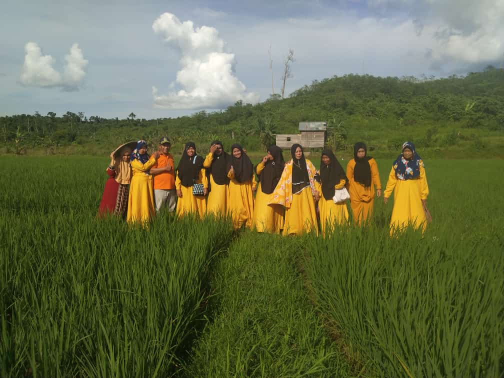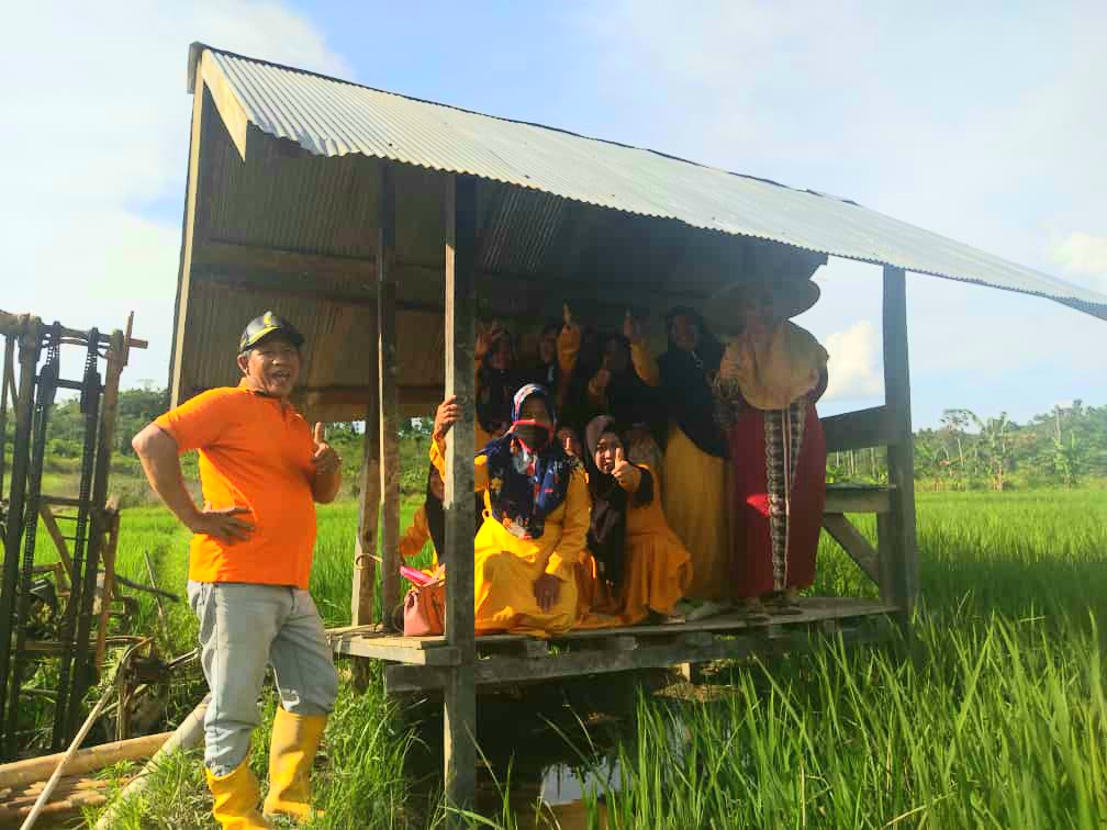 Di tengah ladang sawah majelis taklim istri tercinta Kidang lantunkan yasinan dan pujian Ilahi melalui rebana semoga barokah hasil panennya