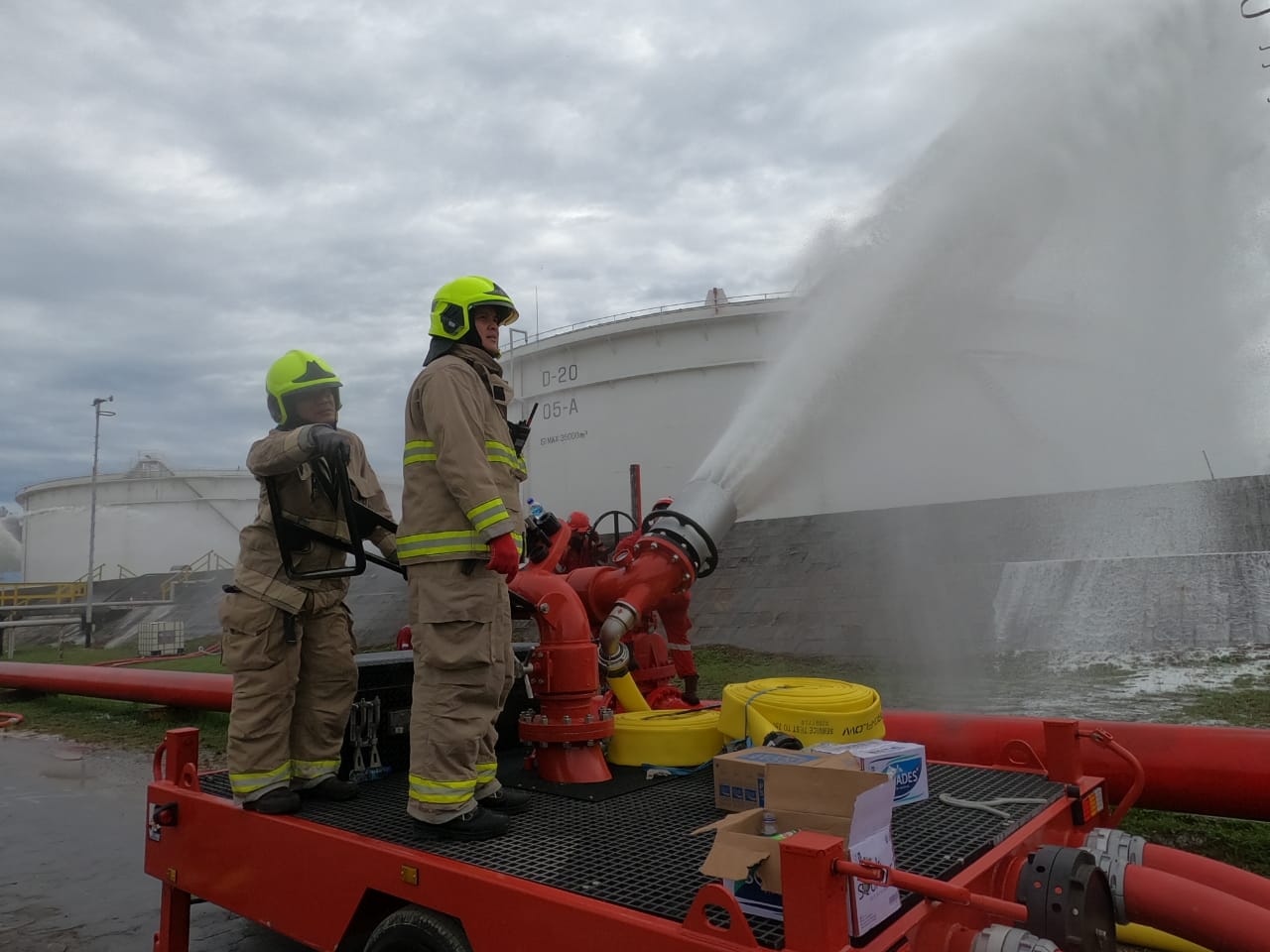 Simulasi juga melibatkan peralatan-peralatan seperti 4 unit Trailer Foam, 2 unit Fire Truck, 1 unit Foam Canon serta 1 Unit Ground. Simulasi yang dilakukan adalah peristiwa kebakaran 2 tanki produk serta terkait adanya aksi demo masyarakat.