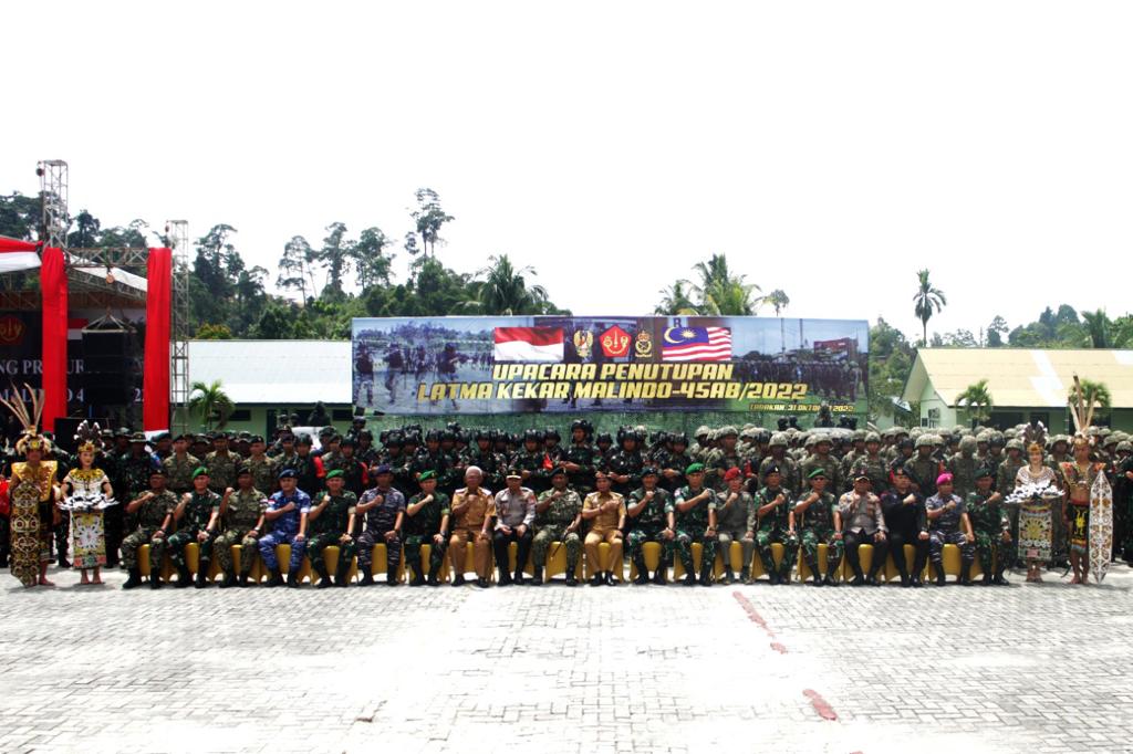 Kaltimkita.com, Balikpapan - Pangdam VI/Mlw, Mayor Jenderal TNI Tri Budi Utomo secara resmi menutup Latihan Bersama (Latma) Keris Kartika Malaysia Indonesia-45AB/2022 (Kekar Malindo-45AB/2022), antara TNI AD dari Yonif Raider 613/Raja Alam dengan Tentera Darat Malaysia (TDM) di Daerah Latihan Kecamatan Juata Laut, Kota Tarakan, Kaltara. Senin (31/10/2022).